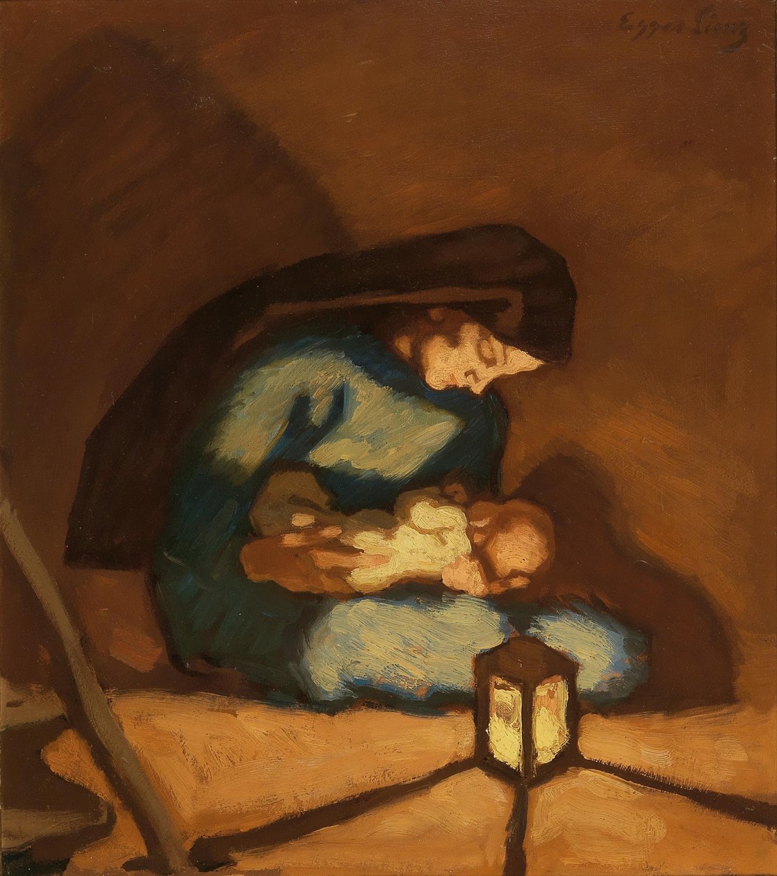 Albin Egger-Lienz (born March 1, 1868, in Striebach near Lienz – died November 4, 1926, in Rencio near Bolzano) was an Austrian painter known for his monumental works and depictions of rural life and human struggles. Egger-Lienz studied under his father, Georg, a painter of sacred subjects, before attending the Academy of Fine Arts in Munich from 1885 to 1893, where he studied under renowned artists such as K. Raupp, G. von Hackl, and W. Lindenschmitt. In 1899, he moved to Vienna, and in 1911, he was appointed to the School of Fine Arts in Weimar. In 1912, he settled permanently in Tyrol, where he would live and work for the rest of his life. Initially focused on plein air painting, Egger-Lienz evolved towards a more monumental style with simplified color palettes. This shift naturally led him to create large-scale murals in his later years. His early works often depicted genre or historical scenes, but he later expanded to more universal themes such as *Life*, *The Earth*, and *Generations*, often presenting them in cycles. With a strong ethical foundation, Egger-Lienz became a painter of great popular appeal, blending dramatic storytelling with a deep connection to human experience. His works are housed in various galleries, including those in Innsbruck, Mannheim, and Vienna. In 1925, he completed murals in the chapel dedicated to fallen soldiers in Lienz, cementing his legacy as a significant figure in Austrian art.