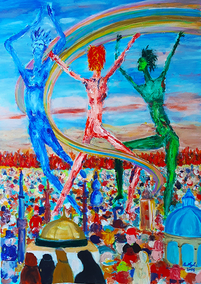 Biagio Battaglia was born in Comiso (RG), Italy, and has been living in Milan since 1961. He completed his studies at the Istituto Statale d’Arte of Comiso, specializing in sculpture. After a brief period working in artisanal sculpture workshops, he began a professional career in the field of building design, working as a technical draftsman for architectural firms—initially in his hometown, and later continuing in Milan. In Milan, he progressed through all stages of the profession, eventually founding his own practice, “TEAM PROGETTO – Architecture and Development”. Through this studio, he has provided technical consultancy in design and project management for leading companies in Italy and abroad. This work allowed him to explore a synthesis between art and the discipline of technical design, helping him reconcile a vision poised between utopia and the observation of the world around him. His passion for art, which began at a very young age, has never faded. Today, he is fully dedicated to painting, seeking to develop a personal artistic language while engaging with and experimenting in the expressive forms of contemporary art. To paraphrase Kant: one might say that among the pleasant, the beautiful, and the good, only the appreciation of the beautiful is a free and disinterested satisfaction—because it is uninfluenced by either sensual desire or rational necessity. Biagio Battaglia develops a pictorial exploration that emerges from the interplay between personal sensitivity and the observation of reality. In his work, beauty is not an abstract value but something shaped by daily life, filtered through a deeply attentive and internalized gaze. His painting remains grounded in the present, engaging with contemporary events and themes without conforming to predefined stylistic formulas. What emerges is an autonomous, coherent, and deeply expressive visual language, where each work asserts a distinct and individual vision. Beneath the surface of his subjects lies a clear intent: to defend and affirm a personal idea of style, where form is organized into a harmonious space that embraces both real and imaginative stimuli. His art stands out for its compositional balance, for the thoughtful organization of space and color. Nothing is merely decorative—every element is part of a meaningful structure aimed at conveying both emotion and thought. Battaglia turns painting into a form of testimony, where allegory and color become the hallmarks of a mature and reflective poetic expression.