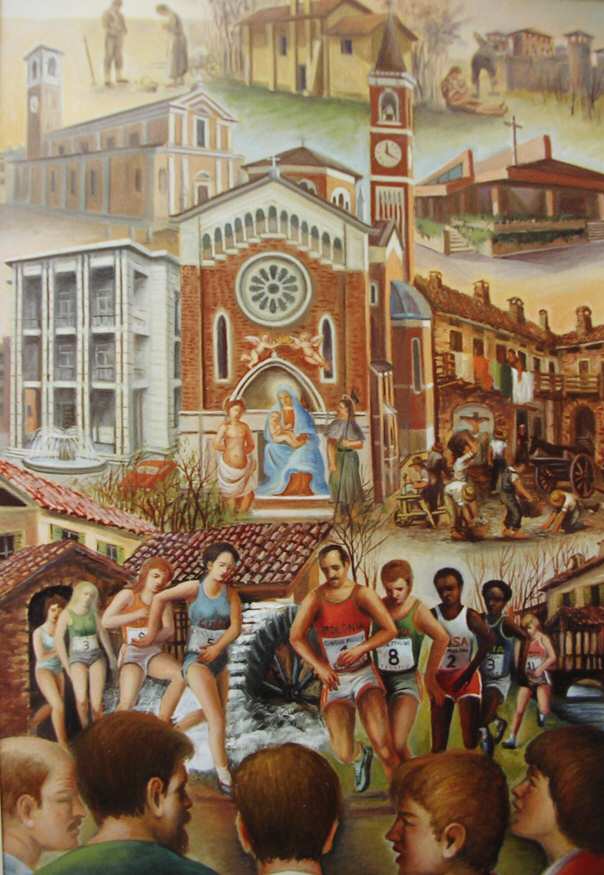 Gianfranco Brusegan was born in San Pellegrino Terme (Bg) on March 9, 1936. Due to his father’s job transfers (he was a customs officer), he first lived in Cannobio (No) on Lake Maggiore and later, during the war, in Oleggio (No), where he attended elementary and middle school (which he completed at the Salesian College in Novara). He moved with his family to Desenzano al Serio in Albino (Bg), where he attended the “Carrara” Academy of Fine Arts in Bergamo, studying under masters Achille Funi and Trento Longaretti. The family later moved to Castelvetro di Modena, where he completed his artistic maturity diploma in Bologna. He participated in competitions and group exhibitions and taught drawing in a private studio in Bologna with professors Pancaldi and Marri. He collaborated with Paul Film of Modena in animation and set design for cartoons for RAI (Carosello). He moved with his family to Legnaro, Padua, to the house of his maternal grandfather, painter Capuzzo Domenico, a renowned sacred art decorator, and collaborated with him on works in several churches in the Padua area. After his grandfather’s passing, he continued collaborating with sacred art painter Sorgato from Padua. In 1964, he married Anna Rinaldi from Castelvetro (Mo) and moved to Cogollo del Cengio (Vi), where he taught Art Education in a middle school. Gianfranco Brusegan stands out for an artistic journey that combines a passion for sacred painting, teaching, and a strong cultural commitment to his community. His art, characterized by a careful study of both traditional and modern painting techniques, is deeply rooted in the religious domain, as demonstrated by the numerous works created for churches and places of worship. However, it is not only his work in sacred painting that makes him interesting, but also his dedication to art education, both with young students and adults, contributing to the formation and spread of visual culture through courses and exhibitions. Brusegan has successfully combined his personal experience as a painter with an ongoing teaching career, instructing in numerous schools and organizing creative courses through which he conveyed not only artistic techniques but also the value of research and personal expression. His career, which has seen him participate in group exhibitions and receive recognition, confirms his solid reputation within the Italian art scene, as evidenced by his works held in private collections and included in important art catalogs. Despite his rigorous approach and dedication to education, Brusegan’s art does not limit itself to mere technical reproduction but is enriched by a continuous search and sensitivity that reflects in his painting, able to engage with the public and invite reflection. The artist has been a spokesperson for art that is both traditional and innovative, rooted in the past but open to contemporary ideas. In essence, his work represents a balance between academic rigor and creative freedom, and his ability to adapt and grow both as an artist and as an educator makes him a figure of great value for the visual culture of our time.