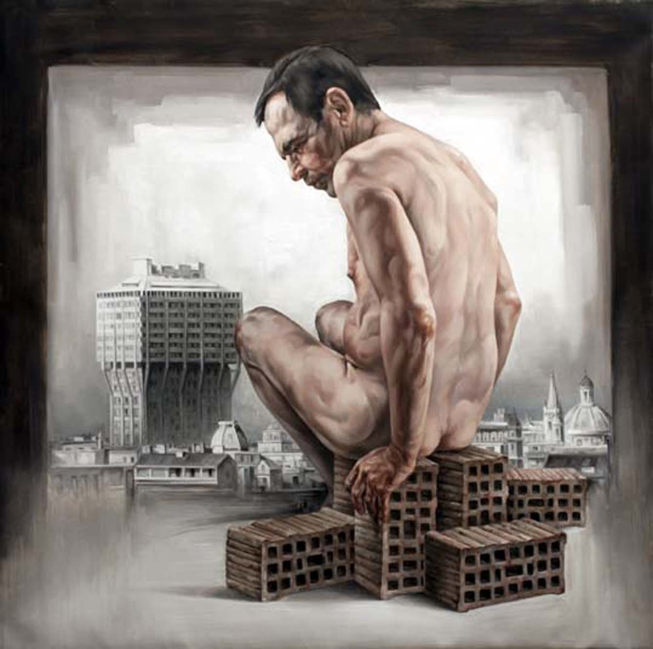 1973 – Galleria Modigliani, Milan; 1980 – Galleria Ciovasso, Milan; 1981 – Galleria San Fedele, Milan; 1983 – Comune di Vittoria; 1984 – Galleria Sagittario, Comiso; 1985 – Galleria Ciovasso, Milan; 1985 – Galleria Cristina Busi, Chiavari; 1987 – Comune di Nova Milanese; 1989 – Galleria Cristina Busi, Chiavari; 1992 – Galerie Kaleidoskop, Mannheim; 1993 – Galleria Cristina Busi, Chiavari; 2000 – Galleria 2E, Suzzara; 2001 – Galleria Cristina Busi, Chiavari; 2003 – Galleria L’Estense Arte, Cernobbio; 2004 – Centre Culturel, Porto Vecchio, Corsica; 2005 – Galleria Previtali, Milan; 2010 – Galleria Sartori, Mantua; 2010 – Galleria Ostrakon, Milan; Giovanni Lo Presti aligns himself with a longstanding artistic tradition that uses the naked body as a site for exploring identity loss, vulnerability, and transformation. His recent work marks a significant shift: the human figure intrudes into the stillness of his familiar interiors, disturbing their suspended calm with a heavy, unsettling presence. Yet this figure remains elusive, concealed behind a mask that both hides and opens up new interpretive dimensions. Lo Presti reworks the theme of the mask — already present in his earlier work — by projecting it into a deeper realm, where the subconscious rises to the surface and manifests almost like a visible wound. This mask does not merely conceal; it reveals, exposing the tension between inner experience and external appearance.