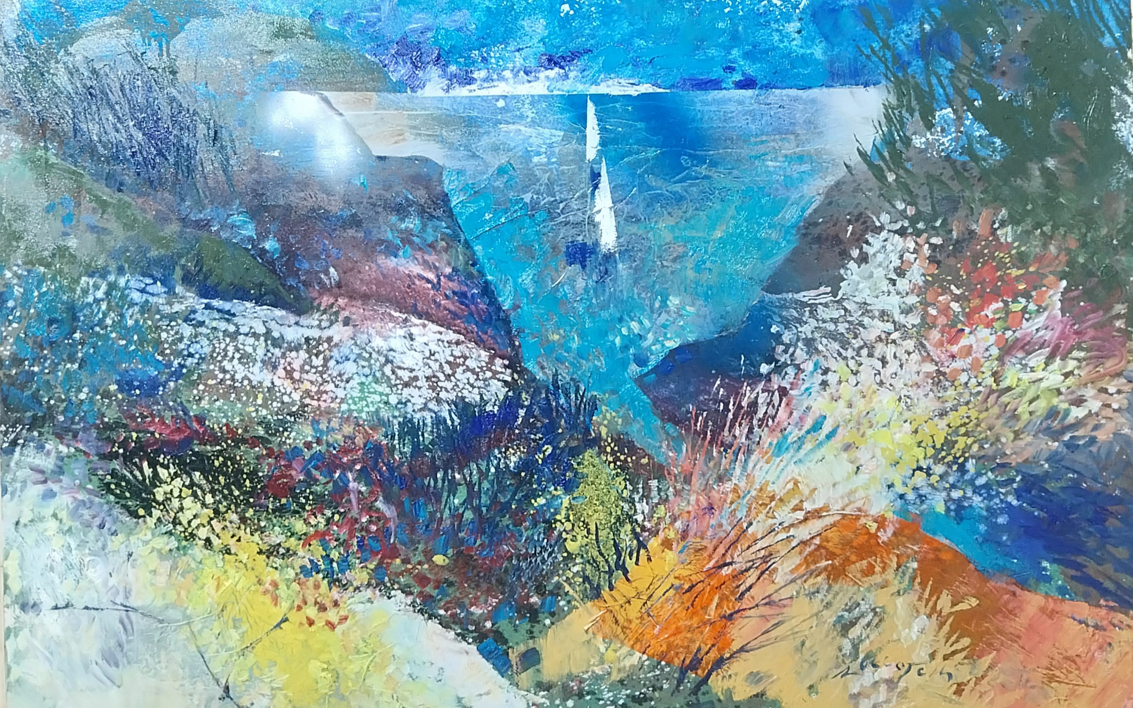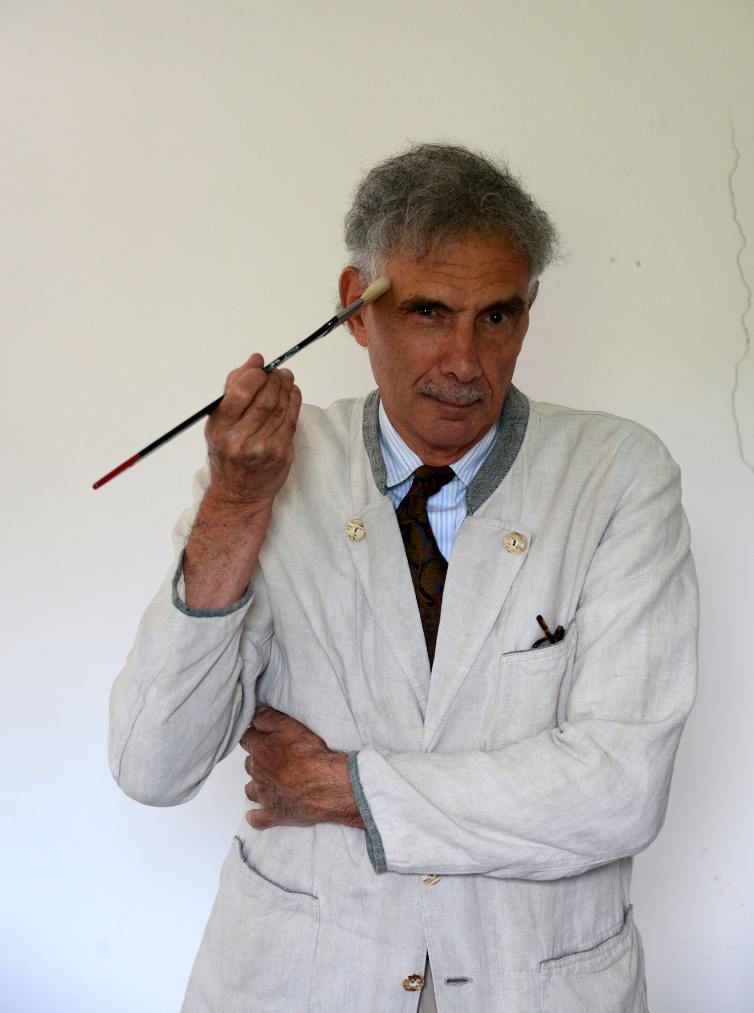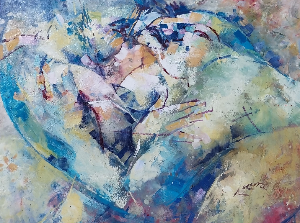 The theme of the embrace, which has come to characterize the most recent phase—emerging about a year ago—of Roccotelli’s artistic vision, seems to suggest that his anticipatory sensitivity, perhaps unconsciously sensing the forthcoming restrictions on close contact brought about by the health emergency, sought to counterbalance them through a pictorial message. This theme emerged unexpectedly from the painter’s palette when, against a background of abstract chromatic fields, faint silhouettes began to appear—bodies leaning toward one another, toward a kiss, an embrace. These gradually evolved into figures of increasingly refined naturalism, only to dissolve once again into the rarefied atmosphere of an indistinct haze, whose contours remain perceptible nonetheless. This bold navigation between forms of near-tangible physicality and abstractions sublimated into signs alluding to the human figure is a hallmark of Roccotelli’s expressive language—unconfined and uncategorizable. His is a practice shaped by a deep and personal freedom, which generates icons of his inner world in a constant search for both Man’s freedom and Beauty, understood as the essence and driving force of nature. And Beauty, as the very essence and force of nature, finds its ultimate expression in the impulse of one being toward another—sexual attraction that leads to union, and thus to the perpetuation of vital energy. To grasp and fix in line and color the sublime mystery of existence is a gift reserved for a rare few in the world of art. With the inauguration of the Roccotelli Art Gallery in October 2020, the artist chose to honor his hometown, Minervino Murge, offering back a vital part of his personal and creative journey. Like flowers returning to their roots, a hundred works—paintings, sculptures, and ceramics—now inhabit the medieval baronial castle from which Roccotelli once set out, decades ago. And it is there he chose to return, ensuring that his name would remain forever tied to that place. The realization of a lifelong dream. The collection is organized into thematic sections: “Abstraction,” “Landscape,” “Urbe,” “Mare,” and finally “Embrace”—a series where male and female bodies intertwine in the timeless gesture of the embrace. This act takes on even deeper meaning in the wake of the pandemic, when human contact became a rare and longed-for experience. Here, love and hope find their expression through form and color. Roccotelli divides his time between several studios: the one in Bari, another in Minervino, and a third in Rosa Marina, his summer retreat nestled among sand dunes and ancient olive trees—bent, yet still alive, just like him. Watching him paint is witnessing transformation itself: “See,” he says, “the color dries, it takes shape, it moves… a bit more yellow, it strengthens the red.” And so, the magic unfolds. Standing before his canvases, one can’t help but wonder: is the real world outside, or is it the one he creates within? Perhaps Roccotelli is not just an artist, but the subconscious of us all.