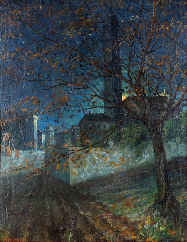 The son of Francesco and Pierina Moscheni, owners of an inn, Rinaldo Agazzi was born into a family that moved from Mapello to Bergamo in 1871. He began his artistic training at the Accademia Carrara in Bergamo under Enrico Scuri and later continued his studies at the Accademia Libera in Rome, where he was contemporaries with Giovanni Cavalleri, Giuseppe Aureli, Cesare Bertolotti, and Carlo Botti. During his time in Rome, Agazzi was strongly influenced by the Neapolitan verist painters such as Ettore Tito, Francesco Paolo Michetti, Vincenzo Irolli, and Francesco Mancini. At the same time, he absorbed influences from the Lombard and Venetian schools, particularly from Giacomo Favretto and Luigi Nono. These varied influences played a crucial role in shaping his artistic personality, which initially adhered to verismo before evolving toward portraiture in the style of Cesare Tallone. In 1884, Agazzi returned to Bergamo, where he settled in Via Osio and began working at the Istituto di Arti Grafiche. The difficult economic conditions of the time forced him to produce large quantities of genre paintings, which were easier to sell. This situation had severe personal consequences, leading to a period of mental health struggles and hospitalization in a psychiatric institution. His personal life was also marked by family issues, including the arrest of his brother-in-law, an event that inspired him to create the painting L’arresto. In 1899, Agazzi participated in the third International Art Exhibition in Venice, exhibiting alongside his younger brother, Ermenegildo, who was also his pupil. He went on to take part in numerous exhibitions both in Italy and abroad, including in Torino, Milan, Venice (where he exhibited La colazione at the XII International Art Exhibition in 1920), Bologna, Paris, Barcelona, London (1913, at the Watercolorists’ Exhibition), Florence, and Munich (at the Quadriennali in 1905 and 1909). He was present at nearly all the major European art events from 1884 until World War I, gaining recognition from collectors and critics alike. Among his many solo exhibitions, the posthumous ones stand out: one at the Palazzo della Permanente in Milan in 1941, with a catalog introduction by R. Giolli and G. Cerrina, and another in Bergamo in 1945, with a catalog introduction by U. Ronchi. Another exhibition in Bergamo also took place later, with a catalog introduction by Mario Monteverdi. The Agazzi Prize, a painting, watercolor, and graphic art competition, is named after Rinaldo and his brother Ermenegildo, in honor of the artists’ birthplace in Mapello.
